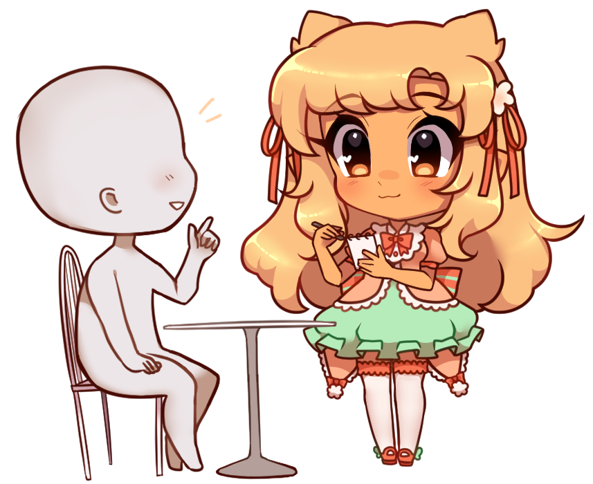 *I can draw multiple characters interacting but I may overthink the composition or take too long so I do not recommend ordering this until I get better at it.
